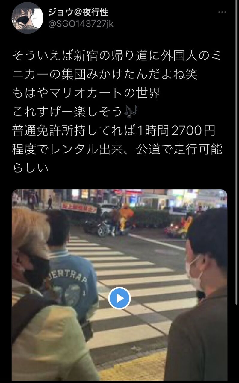 【速報】公道マリオカート復活 2022年10月28日 カテゴリ:雑談・議論 これは公式なイベント??(出典 【速報】公道マリオカート復活)1 名無しさん必死だな :2022/10/25(火) 14:48:26.36ID:pKPUNb6n0 うへ (出典 i.imgur.com) (出典 i.imgur.com) (出典 i.imgur.com) (出典 【速報】公道マリオカート復活) 【【速報】公道マリオカート復活】の続きを読む タグ :#公道マリカ#新宿#外国人#ミニカー